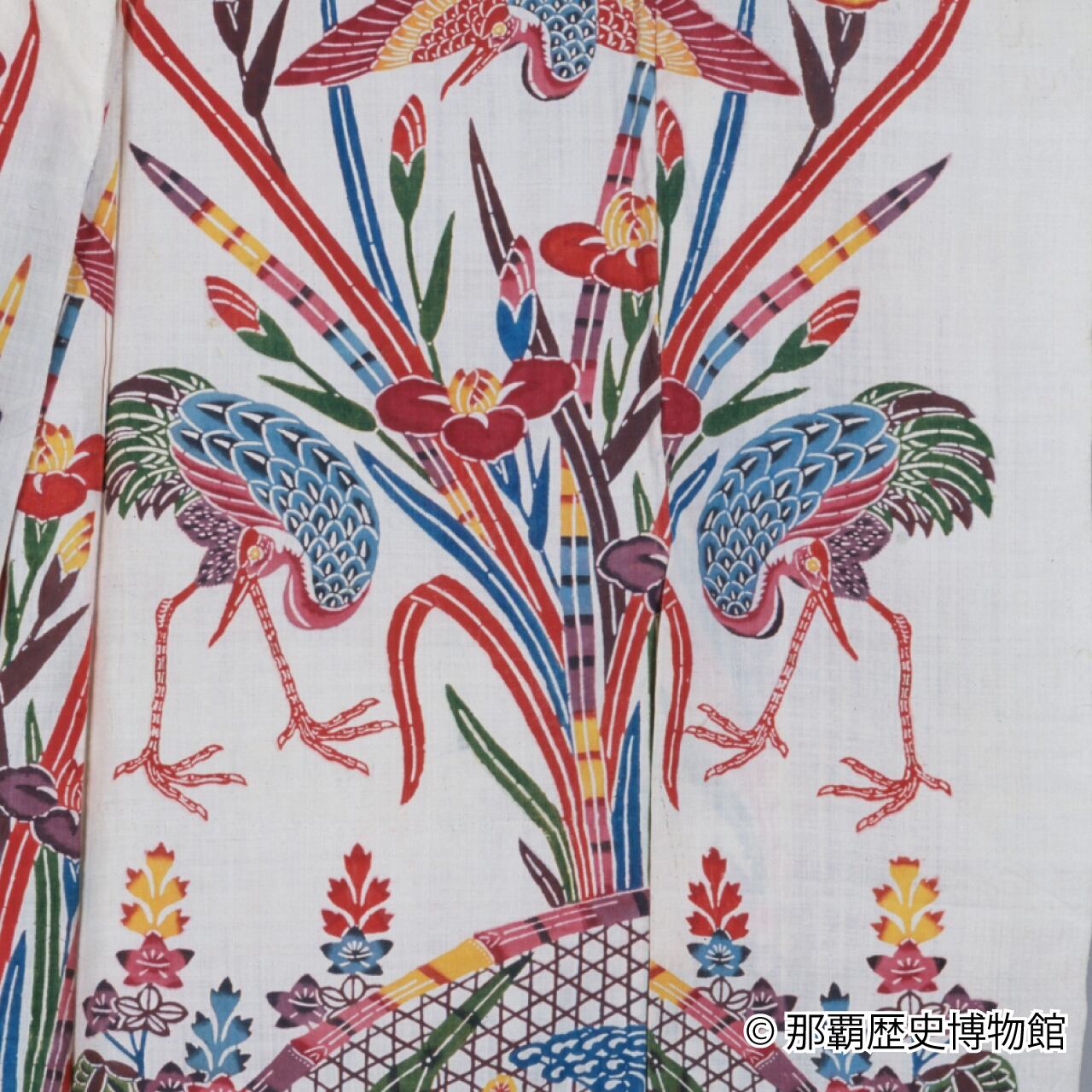 国宝の紅型衣装に見られる吉祥紋の鶴。